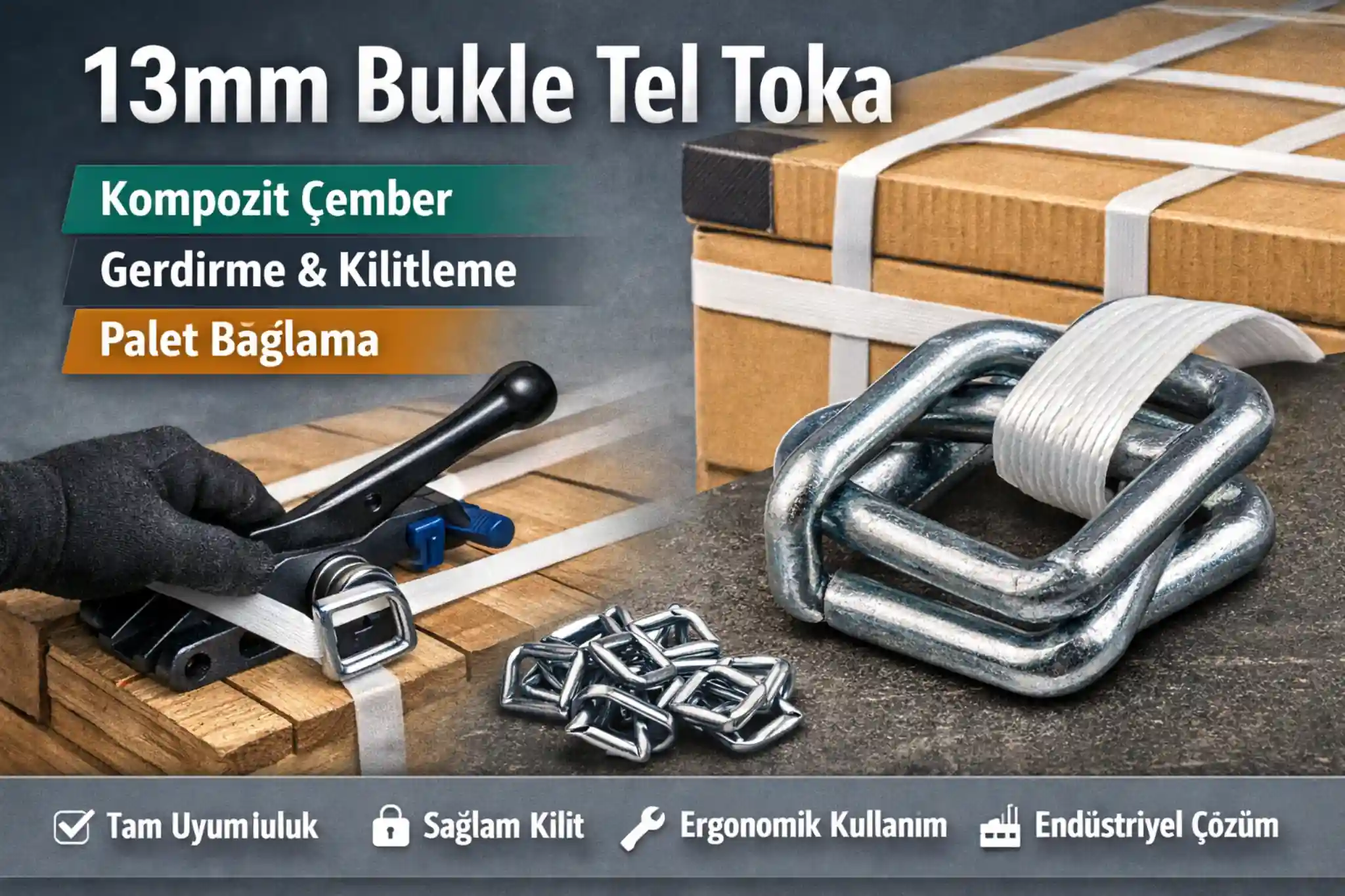 13mm Bukle Tel Toka, kompozit/lifli veya tekstil çember uygulamalarında yükü güvenle sabitlemek için kullanılan, sahada “tel toka” olarak bilinen pratik bir kilitleme parçasıdır. Özellikle paletli sevkiyatlarda, ahşap ve metal ürünlerde, taşıma sırasında gevşeme riskini azaltmak için gerdirme sonrası çemberin ucunu kilitler. Doğru ölçü ve doğru uygulama ile; hızlı iş akışı, tekrarlanabilir gerginlik ve düzenli bir görünüm sağlar. Bu yazıda 13mm tel toka seçimi, kullanım adımları, uyumluluk ve verimlilik ipuçlarını net bir dille ele alacağız.