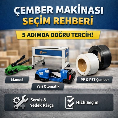 Çember Makinası Seçim Rehberi (2026), doğru modeli 5 adımda bulmanız için hazırlanmış pratik bir “çember makinesi seçimi” kılavuzudur. Aynı ürünü bağlayan iki işletmenin ihtiyacı farklı olabilir: biri koli çemberleme için hız ister, diğeri palet çemberleme için dayanım ve stabilite arar. Bu rehberde iş hacmi, çember tipi (PP çember / PET çember), kullanım alanı ve servis kriterlerini netleştirerek en doğru sonuca ilerleyeceksiniz. Temel tanımı hızlıca hatırlamak isterseniz çember makinası içeriğine de göz atabilirsiniz; ardından burada model seçimini adım adım tamamlayın.