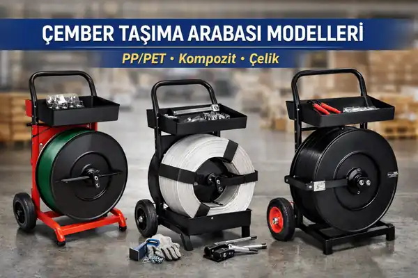 Çember Taşıma Arabası, PP/PET/kompozit/çelik çember bobinlerini sahada düzenli taşımayı ve kontrollü açmayı sağlayan, çemberleme operasyonunun “görünmeyen ama en çok zaman kazandıran” ekipmanıdır. Bobin dağılmasını azaltır, çemberin dolaşmasını önler, operatörün işini hızlandırır ve sahada güvenliği artırır. Bu yazıda; en yaygın modelleri, hangi işte hangi arabanın daha doğru olduğunu, seçim kriterlerini ve teknik detayları net bir dille ele alacağız.