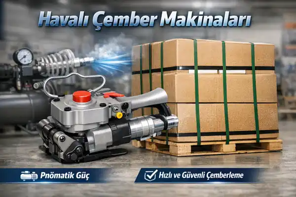 Pnömatik çemberleme çözümleri; demir-çelik, lojistik, otomotiv yan sanayi, yapı malzemeleri, kereste, cam ve ağır ambalajlı endüstrilerde sık kullanılır. Düzensiz ve ağır yüklerde daha yüksek germe ihtiyacı olduğundan, havalı sistemlerin stabil sıkma avantajı belirginleşir. Eğer tesisinizde basınçlı hava altyapısı hazırsa, operasyona entegre etmek daha kolaydır. Kategori içindeki seçenekleri incelemek için havalı çember makinaları sayfasındaki model çeşitliliği iyi bir başlangıç noktasıdır.